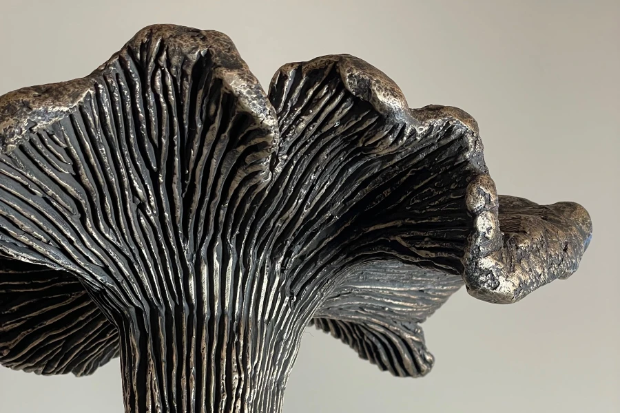 My floral sculpture features my newest large, bronze chanterelle mushroom sculpture, a handcrafted vessel adorned with hundreds of bear grass leaves, and gorgeous, buttery-yellow peonies, kangaroo paws, billy balls, and more!